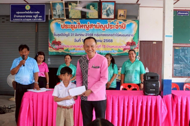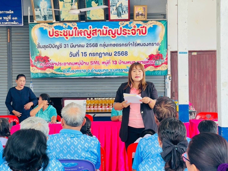 วันที่ 15 กรกฎาคม 2568 นายอาทร ชัยยันต์ สหกรณ์จังหวัดนครราชสีมา เป็นประธานเปิดการประชุมใหญ่สามัญประจำปี สิ้นสุดวันที่ 31 มีนาคม 2568 ของ กลุ่มเกษตรกรทำไร่หนองกราด ณ ศาลาประชาคมหมู่บ้าน SML หมู่ที่ 13 บ้านหนองยายหอม ตำบลหนองกราด อำเภอด่านขุนทด จังหวัดนครราชสีมา มีสมาชิกเข้าร่วมประชุมจำนวน 52 คนซึ่งในรอบปีบัญชีที่ผ่านมา กลุ่มเกษตรกรฯ มีกำไรสุทธิ 165,106.31 บาท ปันผลตามหุ้น จำนวน 34,654.00 บาท และเงินเฉลี่ยคืนตามส่วนธุรกิจ จำนวน 6,835.00 บาท โดยสหกรณ์จังหวัดนครราชสีมา ได้กล่าวชื่นชม กลุ่มเกษตรกรทำไร่หนองกราด ที่ได้รับพระราชทานโล่รางวัลสถาบันเกษตรกรดีเด่นแห่งชาติ ประจำปี 2568 ประเภท"กลุ่มเกษตรกรทำไร่"และได้บริหารจัดการที่ดี ทำให้มีกำไรมาอย่างต่อเนื่องแสดงให้เห็นถึงความเข้มแข็ง ในการบริหารกิจการและความร่วมมือของสมาชิกกลุ่มเกษตรกรได้เป็นอย่างดีและให้ตระหนักถึงการดำเนินงานอยู่บนความไม่ประมาท ดำเนินกิจการด้วยความมั่นคงและความยั่งยืน