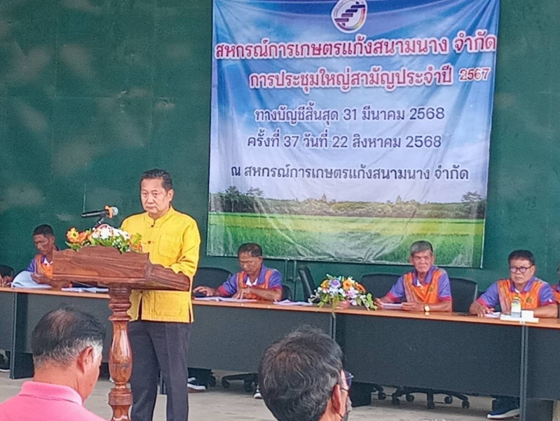 วันที่ 22 สิงหาคม 2568 นายสุวิทย์ วรรณกิจ ผู้อำนวยการกลุ่มส่งเสริมสหกรณ์ 2 เข้าร่วมการประชุมใหญ่สามัญประจำปี สำหรับปีบัญชีสิ้นสุดวันที่ 31 มีนาคม 2568 ของ สหกรณ์การเกษตรแก้งสนามนาง จำกัด อำเภอแก้งสนามนาง จังหวัดนครราชสีมา