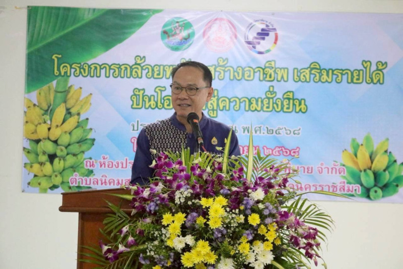 วันที่ 24 กันยายน 2568 นายอาทร ชัยยันต์ สหกรณ์จังหวัดนครราชสีมา เป็นประธานเปิดโครงการ "กล้วยพลัส" สร้างอาชีพ เสริมรายได้ ปันโอกาสสู่ความยั่งยืน คณะทำงานส่งเสริมพัฒนาอาชีพและการตลาด (คทช.) นครราชสีมา มีเป้าหมายเพื่อสนับสนุนและพัฒนาอาชีพให้กับสมาชิกนิคมสร้างตนเอง (กลุ่มโครงการ คทช.) และสมาชิกสหกรณ์การเกษตรนิคม ฯ พิมาย จำกัด โดยมุ่งเน้นการฝึกทักษะการแปรรูปกล้วยน้ำว้า เพื่อเพิ่มมูลค่าผลผลิตทางการเกษตร